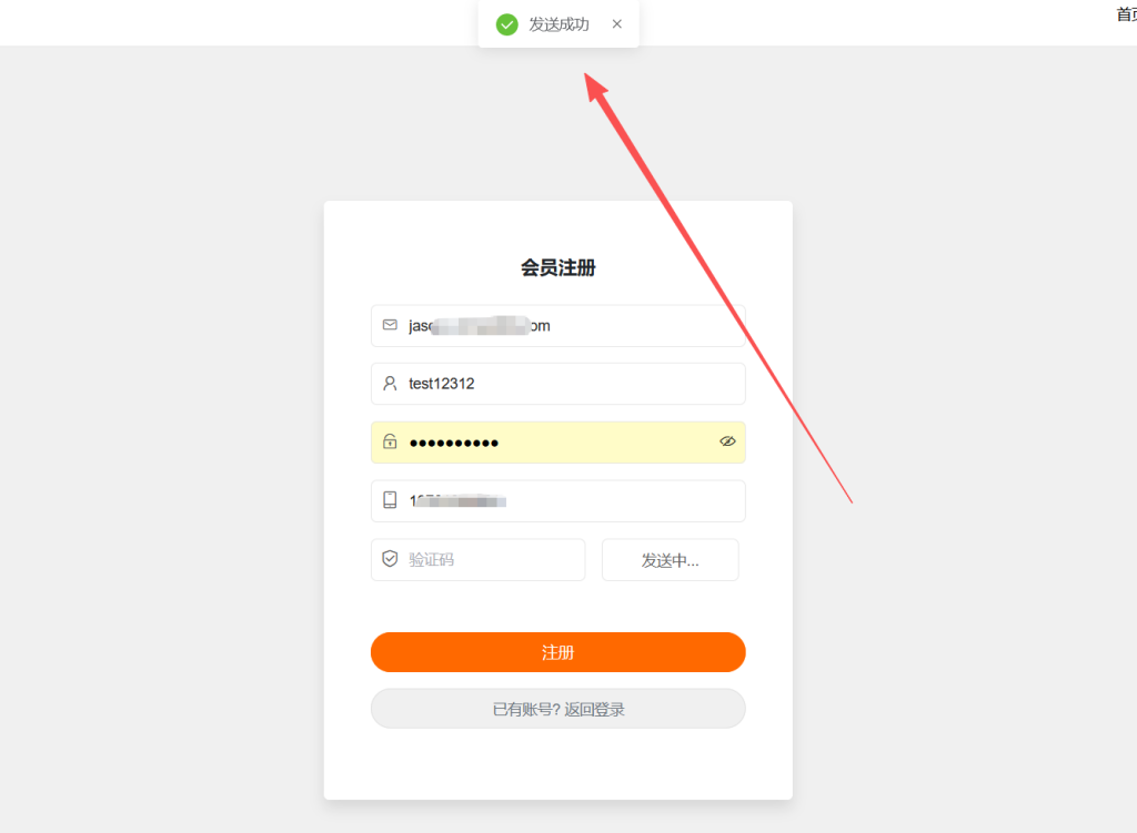 经过上面的替换,短信宝的短信平台已经替换成功了,可以正常使用了。进行测试发送: